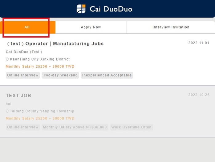 - In “All”, you can see jobs you’ve applied and the job interview invitations that you’ve received.
