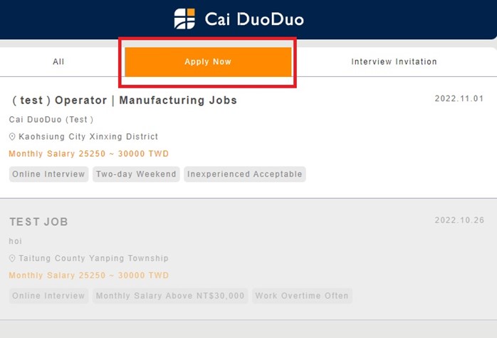 - In “Apply Now”, you can see all the jobs you’ve applied.