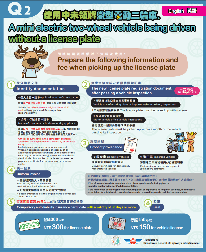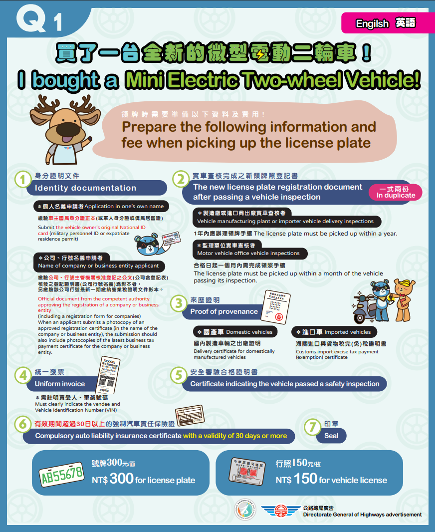 The General Administration of Highways once again reminds that the "Micro Electric Two-Wheeler Zone" has set up a lazy bag with 6 Chinese words and a one-time notice, and foreign migrant workers can first check the relevant information on the documents required for applying for a license online, and also enjoy the preferential measure of NT$450 for listing before December 31 this year.