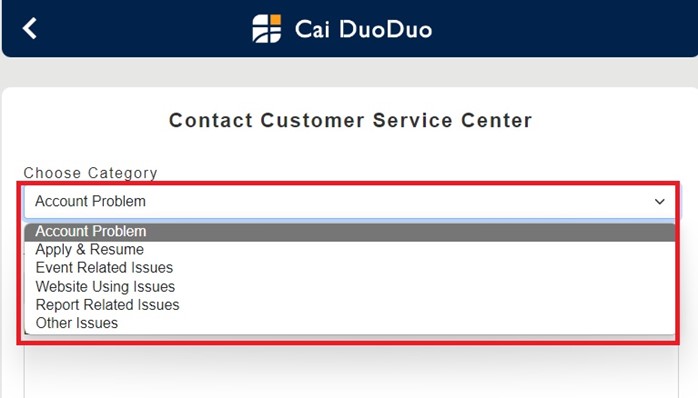 If you have any problems when using Cai DuoDuo Job Bank, you can contact our service center on this page.