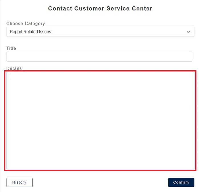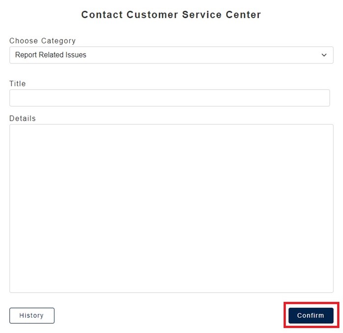 - After you entering all the fields, please click “Confirm” to send out the problem to service center.