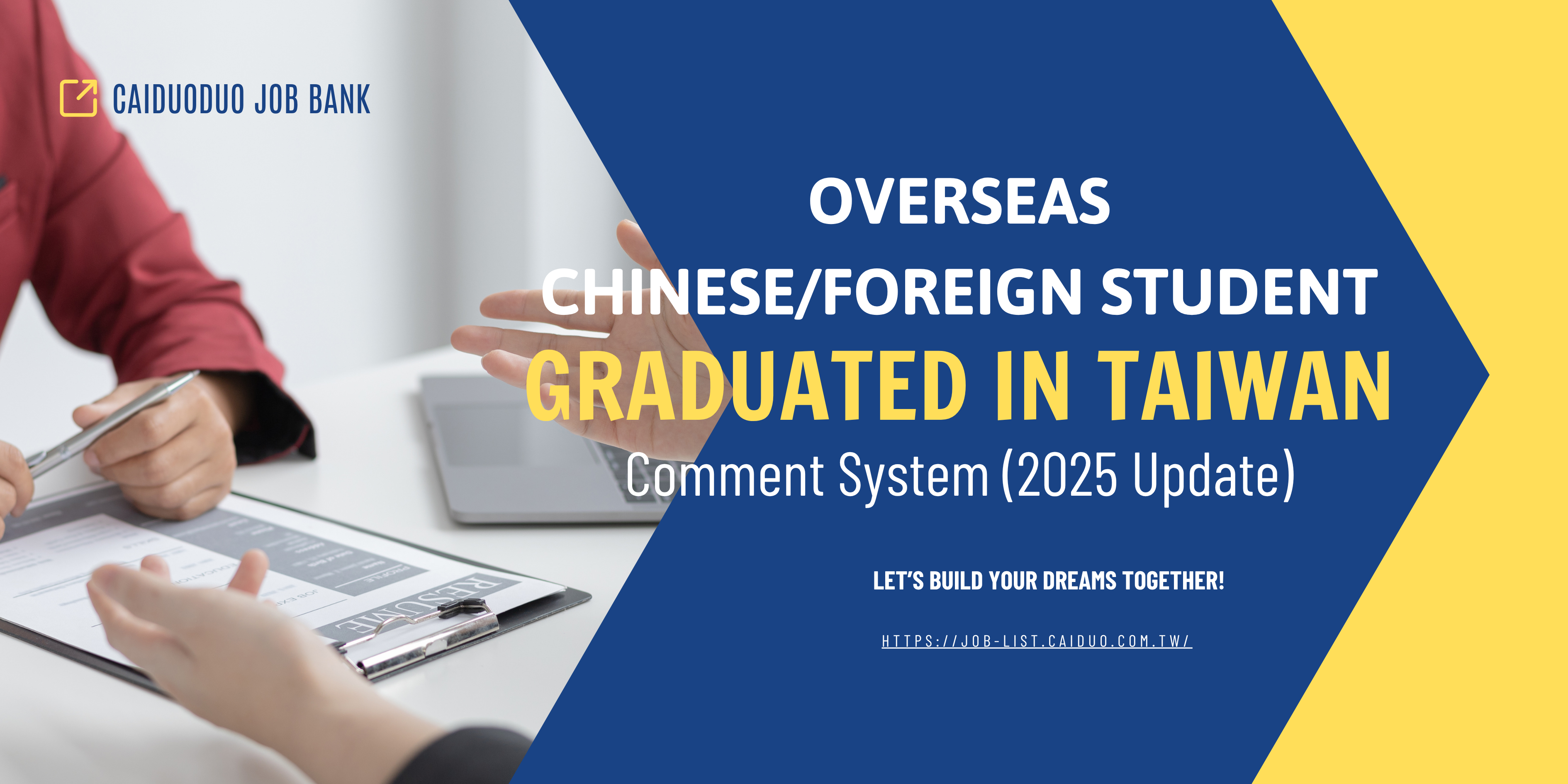 For job opportunities that help you qualify under the point system, visit Cai DuoDuo Job Bank job-list.caiduo.com.tw and start preparing your application today.